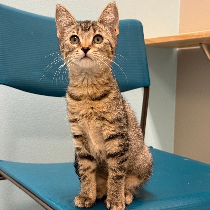 Meet Onion. She appropriately named since this little lady has many layers to peel away! She came to the Alliance as a small kitten with five siblings (mom was TNR’d). She was living under a small wood-slatted porch where they were born. All of her siblings have been adopted, now it is her turn! She is so funny—she LOVES other cats (and would honestly do best with another one in her new home), fine with dogs and really loves men. She is the most vocal (in a cute way, not an annoying one) kitten that the fosters parents have had, she will have a full-on conversation with you. She loves to play, uses the litter box perfectly and is fully vetted until next year. She is not great getting picked up, but that should come in time. She really blossoms once she settles in and loves to purr and cuddle. She would not do well in a home with small kids. She would do best with someone that speaks “cat” and will help her peel away those layers, please ask about her today! Reach out to our Adoptions Team at Adopt@SavingAnimalsToday.org to set up a meet and greet!